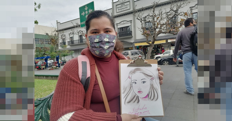 Fernanda utiliza un lápiz con punta de carbón y una hoja blanca tamaño carta; plasma los rostros y las emociones que reflejan