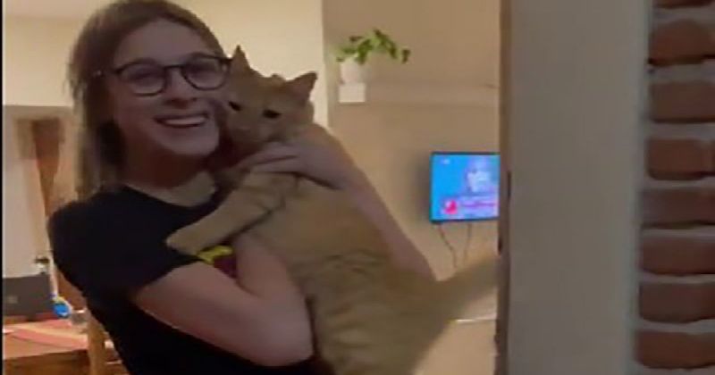 Gatito le abre la puerta a su dueña tras olvidar las llaves