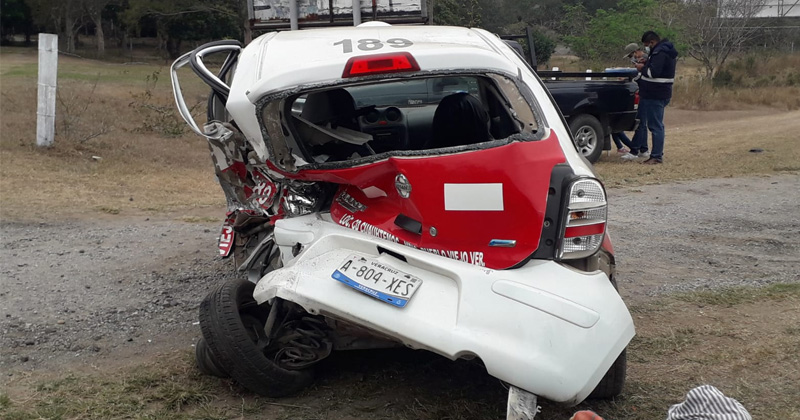Un auto del transporte público quedó destrozado de la parte trasera, debido al fuerte golpazo