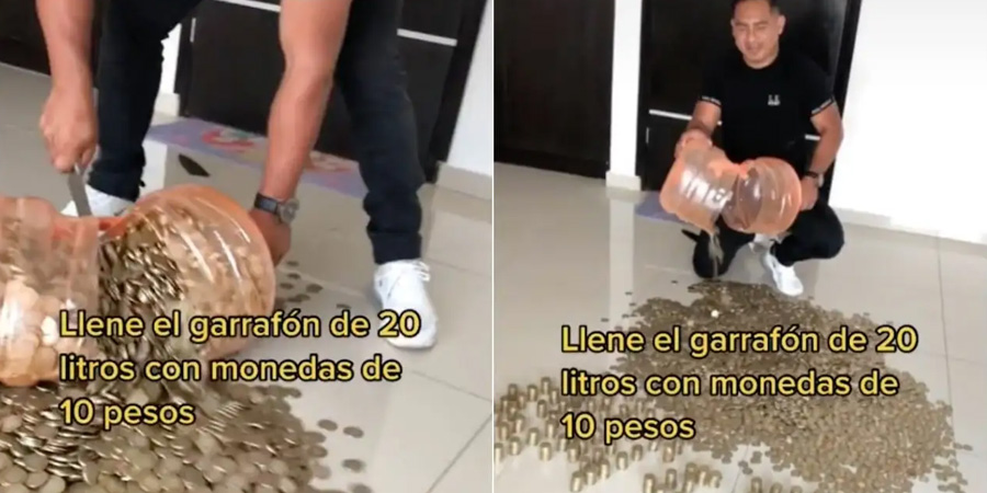 Hombre ahorró monedas de 10 pesos y revela la cantidad que junto