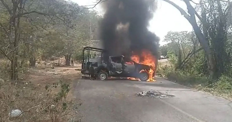 Incendian patrulla durante jornada electoral en Oaxaca