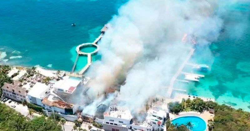 Fuerte incendio consume delfinario en Isla Mujeres