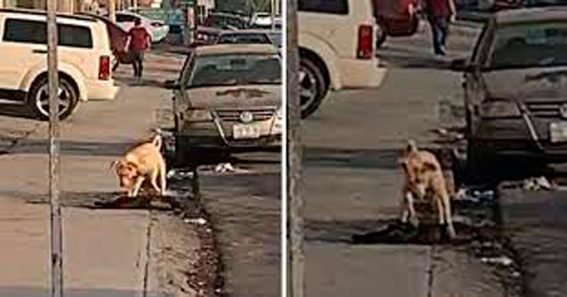 Un video comenzó a difundirse masivamente y muestra el momento en el que un perrito intenta reanimar a su compañero atropellado, en calles de Nuevo León