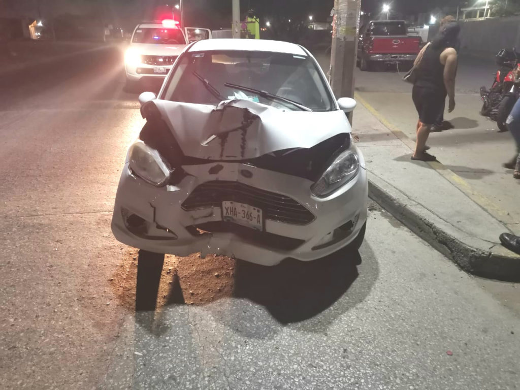 La unidad involucrada es un Ford Fiesta en color blanco con placas del estado de Tamaulipas