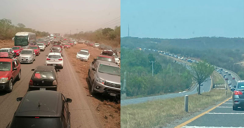 Habitantes de las comunidades cercanas, tuvieron que bajar de la carretera para poder continuar su camino.