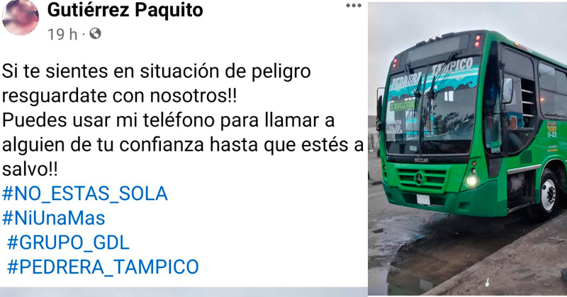Chofer de la ruta Pedrera – Tampico ofrece resguardo en su unidad si alguna mujer está en situación de riesgo