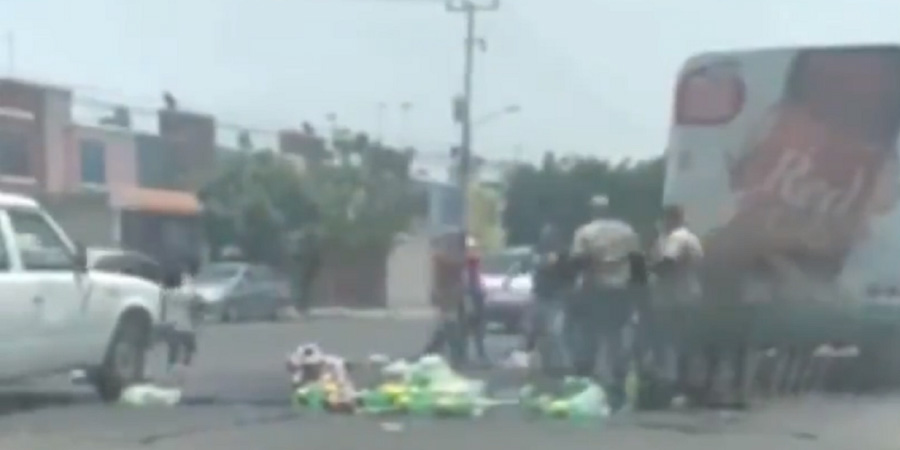 Pobladores ayudan a recoger mercancía que cayó de un camión de refrescos