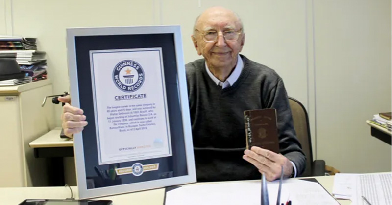 Walter Orthmann, de 100 años, lleva 84 años trabajando para una compañía textil de la ciudad de Brusque, en el sureño estado de Santa Catarina, en Brasil.