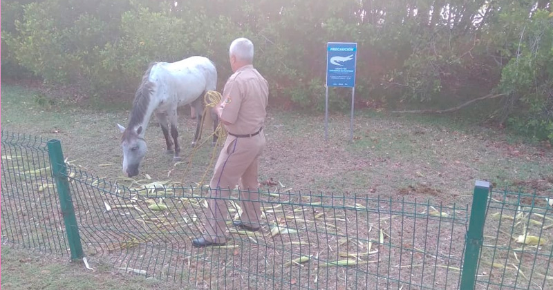 El propietario lo había amarrado en esa zona pese a que hay un letrero que advierte sobre la presencia de cocodrilos.