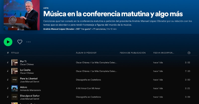 AMLO comparte playlist de las canciones que han sonado en «La Mañanera»