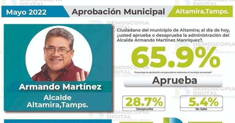 Alcanzando un puntaje histórico en este municipio con el 65.9 por ciento de aprobación