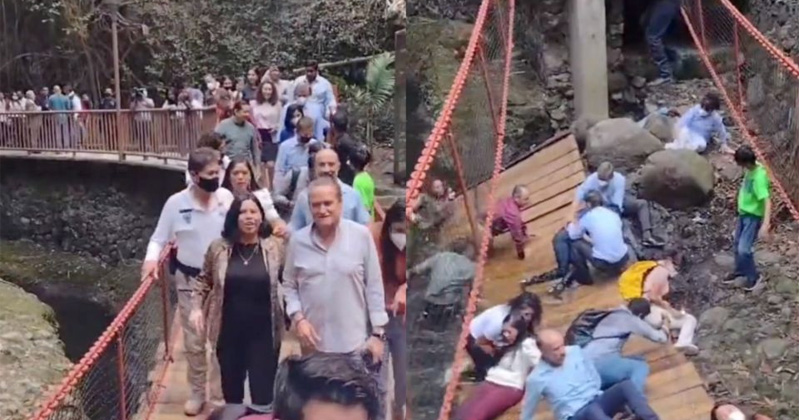 Se desploma puente colgante en Cuernavaca; cae el alcalde