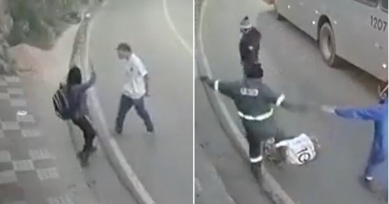 Sujeto acosaba a mujer en la carretera; pasajeros de autobús se bajan a defenderla
