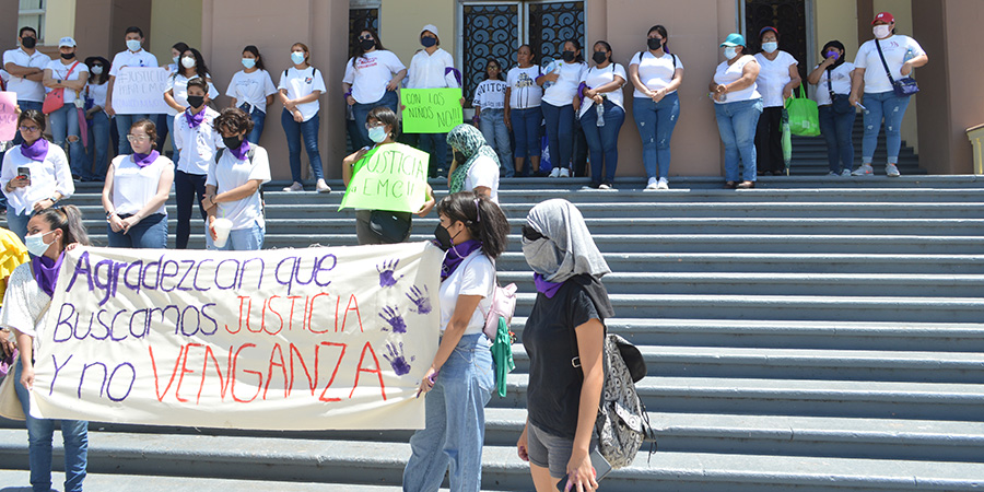 Madre de la menor de 4 años, con apoyo de grupos feministas, demanda en Palacio de Gobierno que se acelere la investigación para esclarecer un presunto abuso sexual