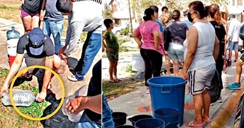 En Guadalupe se rompe un tubo y habitantes de la colonia Los Delfines van a llenar sus tinas y hasta se bañan en la vía pública.