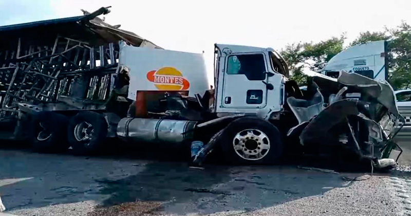 Colisionan tractocamiones en carretera