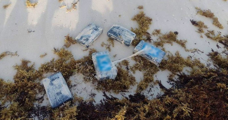 En Tulum, elementos de la Guardia Nacional decomisaron paquetes con cocaína ocultos entre el sargazo de la playa.
