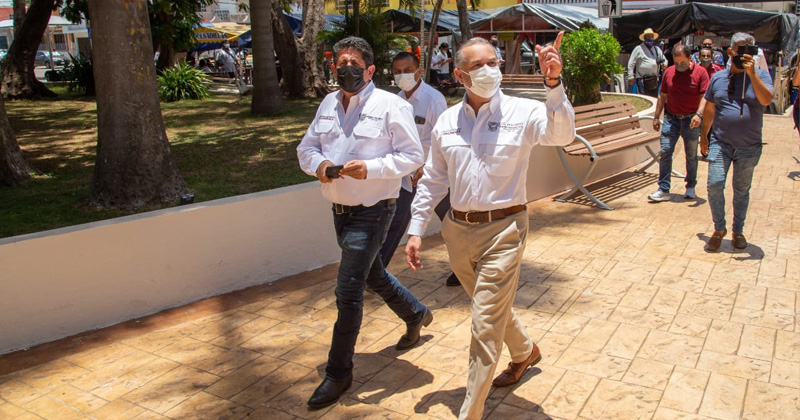 El alcalde Adrián Oseguera acudió acompañado de su equipo de trabajo para supervisar los avances de la remodelación