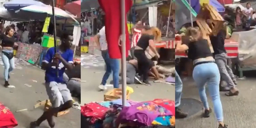 VIDEO: Fuerte pelea entre vendedores ambulantes y migrantes en Tapachula
