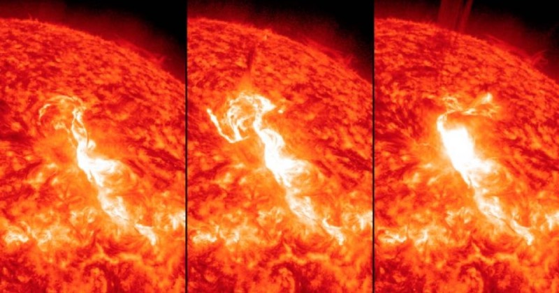 En aquella ocasión, el Observatorio de Dinámica Solar de la NASA registró la llamarada alrededor de las 9:47 de la mañana, hora del Este, de aquel sábado