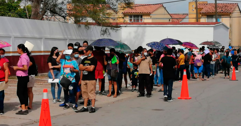 En medio de una sensación de casi 40 grados, padres de familia realizan largas filas en las sedes de vacunación anticovid en Altamira.