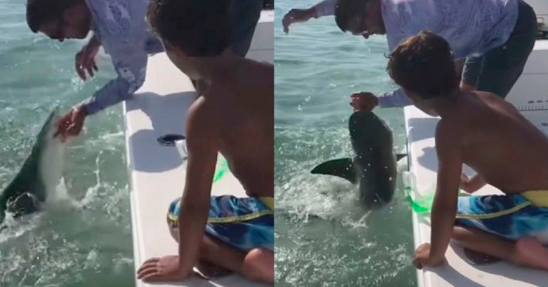 Captan momento en que un tiburón le arranca el dedo a un pescador