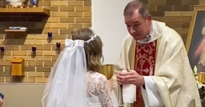 Niña se bebe todo el vino de consagrar en su Primera Comunión