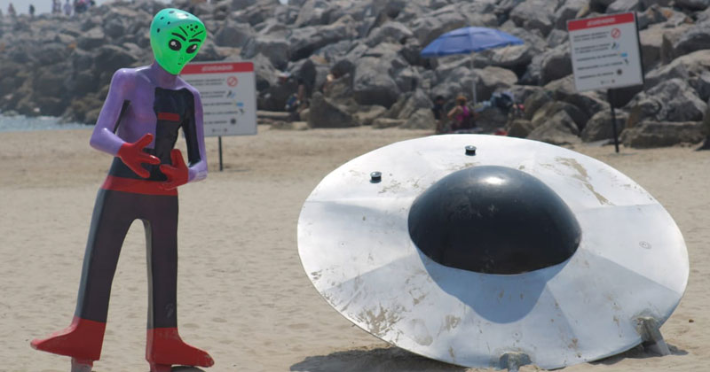 En la zona de frente de playa tenemos la imagen de un platillo volador con la figura de lo que pudiera ser un ser extraterrestre y que les causa mucha admiración a los visitantes.