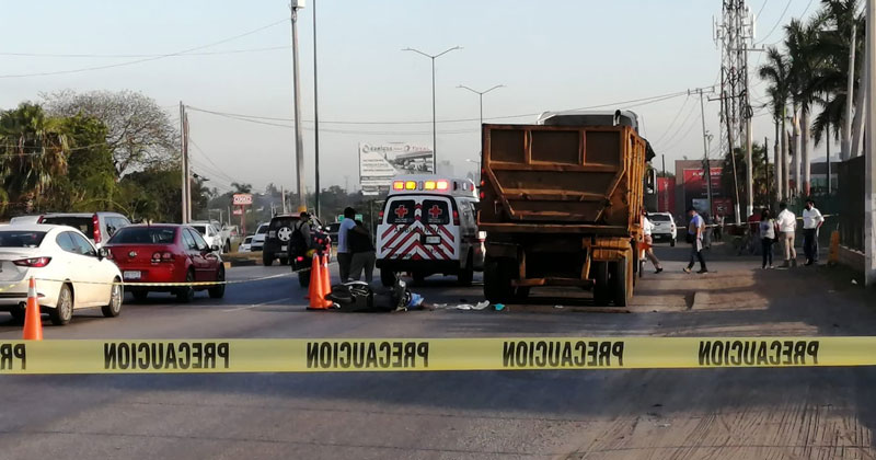 Mujer motociclista fallece al chocar con tráiler en Altamira
