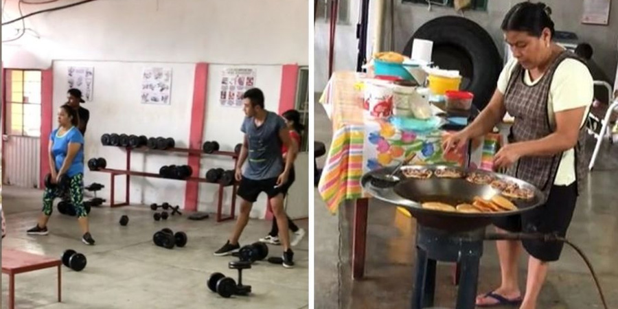 Señora con puesto de garnachas dentro de un gimnasio se vuelve viral