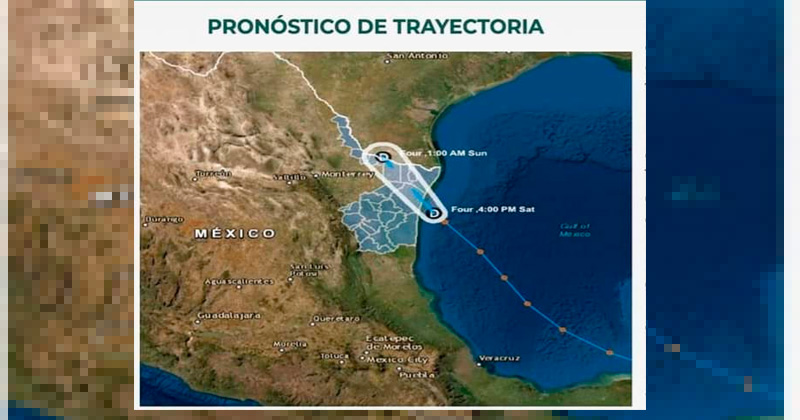 De acuerdo a lo informado por la coordinación de Protección Civil en Tamaulipas, este fenómeno mantiene su trayectoria hacia el Noroeste y se estima que llegue al municipio de Reynosa a la 1 de la madrugada