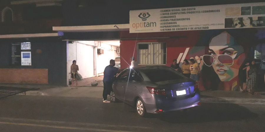 Choca, lo proyectan contra negocio y derriba portón