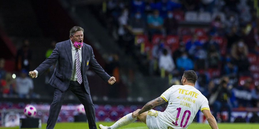 El técnico del Club Tigres, Miguel Herrera critica a los seguidores que le silbaron a André-Pierre Gignac, en el juego contra el Club Necaxa.