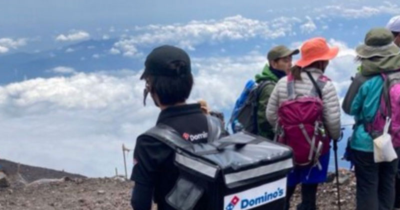 Repartidor sube al Monte Fuji para entregar una pizza