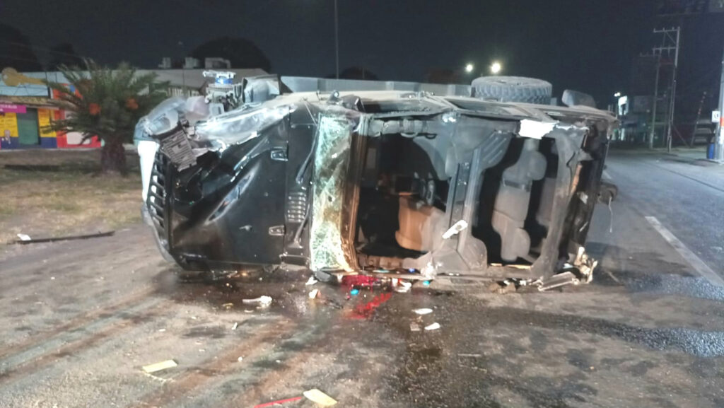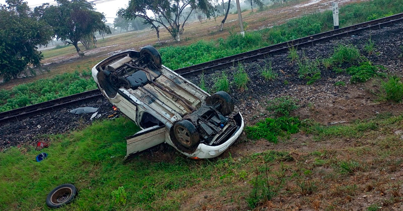 Volcadura de camioneta en Altamira por desprendimiento de llanta
