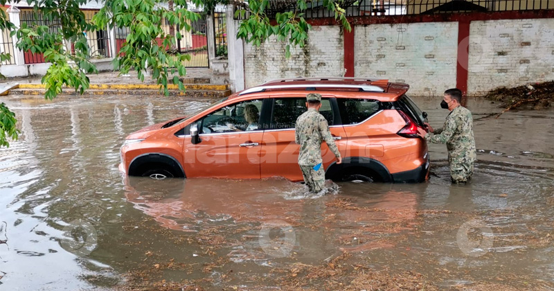 Dos mujeres quedaron atrapadas en su vehículo tras inundarse avenida en Madero