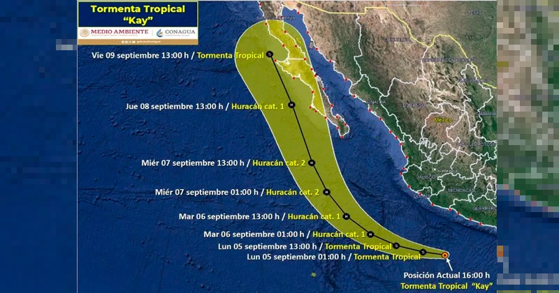 Tiene vientos máximos sostenidos de 65 kilómetros por hora (km/h), rachas de 85 km/h y desplazamiento hacia el oeste-noroeste a 20 km/h