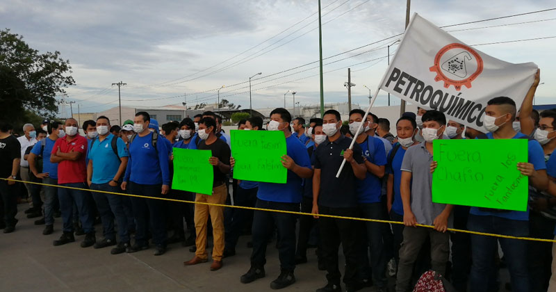 Los inconformes mantendrán bloqueados los dos accesos a la planta hasta que atiendan su exigencia, la cual es apoyada por los dirigentes del sindicato petroquímico.