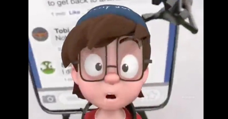 Con millones de veces compartido, el material animado presenta a un enorme celular con patas, caminando my feliz, pues lleva en la mano una delgada correa de la que sostiene a un niño, quien le sigue presuroso