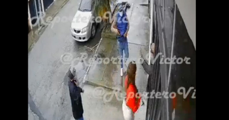 La mujer se da cuenta de las malas intenciones de los sujetos y, sin perder tiempo, se mete al domicilio, mientras el adulto mayor intenta detener a los delincuentes