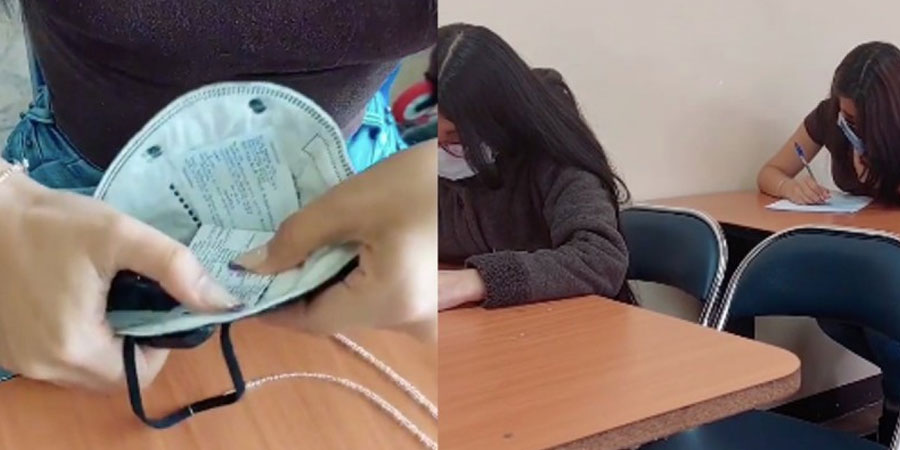 Una joven estudiante compartió en TikTok cómo metió su acordeón dentro del cubrebocas para pasar el examen.