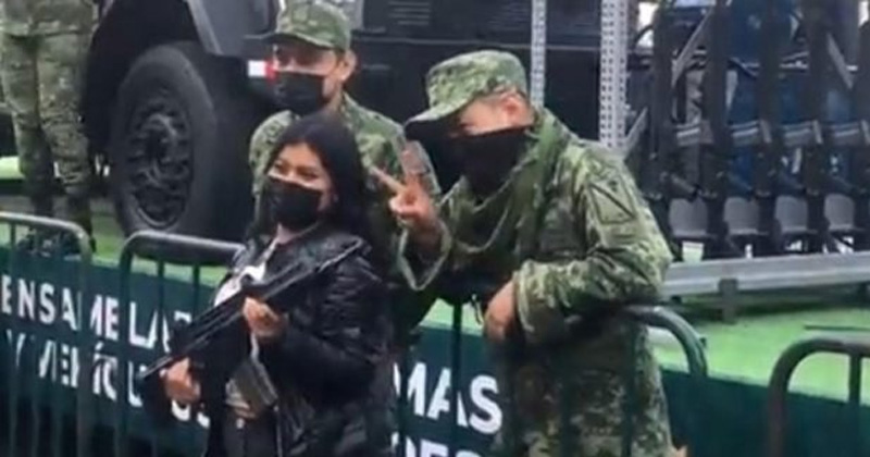 En el marco del desfile cívico-militar del 16 de septiembre, militares prestaron un arma a asistentes civiles al acto para que posaran con ella y se tomaran fotografías