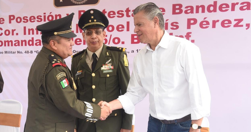 El mandatario deseó al nuevo Comandante del Quinceavo Batallón de Infantería el mayor de los éxitos y reiteró la disposición de su gobierno de colaborar en las tareas de seguridad