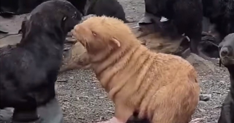 En la isla Tiuleni, descubrieron una foca con un característico color blanquecino con ciertos toques pelirrojos, además de ojos azules junto a un grupo de pequeños animales de su especie, siendo así un raro ejemplar albino