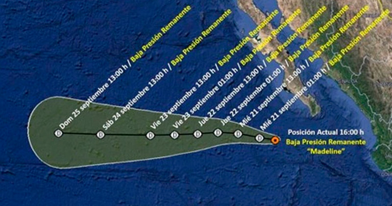 Conagua alertó que ‘Madeline’ dejará lluvias fuertes en Baja California Sur y aisladas en Baja California.