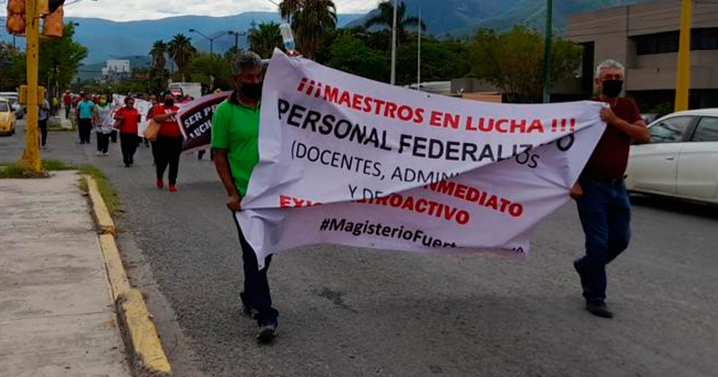 Los docentes que reclaman el pago del retroactivo al fortalecimiento salarial se manifestaron ahora en la calle 8, frente a la llamada Casa Tamaulipas, donde se les insistió en que les pagarán el lunes