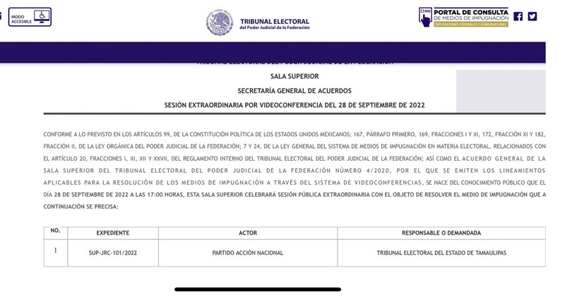 El TEPJF convocó a sesión extraordinaria para el 28 de septiembre a las 17:00 horas, en la que se discutiría el proyecto del magistrado Vargas Valdez que propone ratificar el triunfo de Américo Villarreal