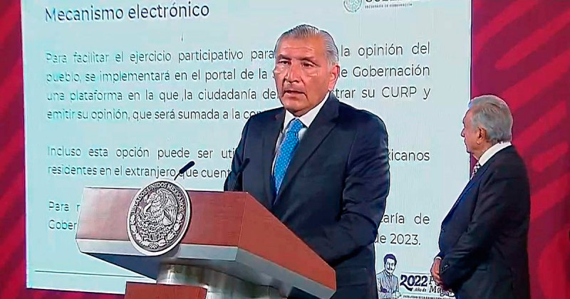 El titular de la Segob, Adán Augusto López, informó que el 10 de octubre iniciará la difusión; si minuta que se discute en el Congreso no es aprobada, se presentará iniciativa con resultados de la consulta