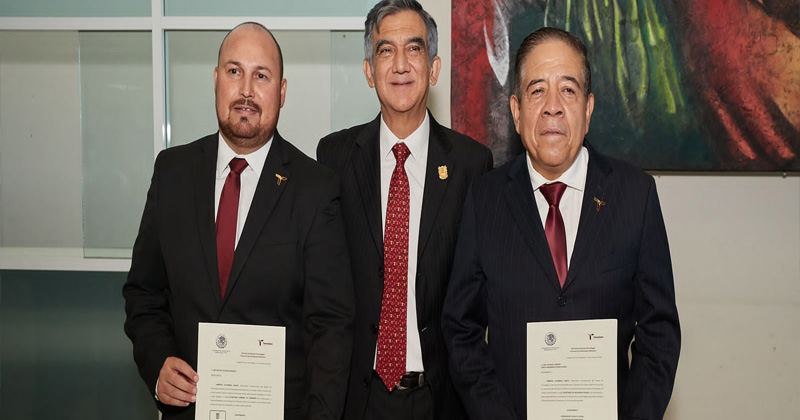 El mandatario entregó el nombramiento como Secretario de Seguridad Pública al General de Brigada Diplomado de Estado Mayor Retirado Sergio Hernando Chávez García y como Secretario General de Gobierno, al Licenciado Héctor Joel Villegas González