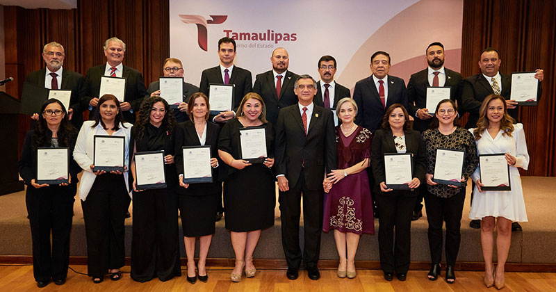 “Ustedes fueron seleccionados por su capacidad, por su honestidad y porque vimos esa lealtad con el pueblo de Tamaulipas”, dijo el Gobernador al entregar uno a uno los nombramientos a 15 funcionarios, en una ceremonia realizada este sábado por la noche, en el Salón Independencia del Palacio de Gobierno.